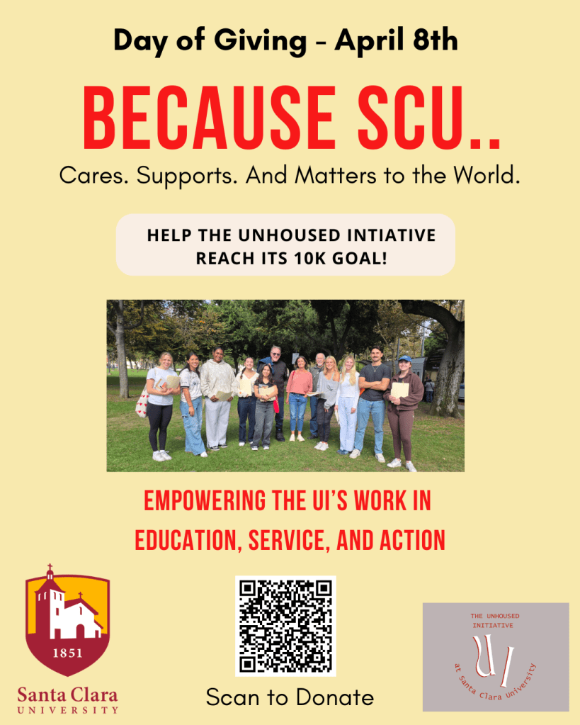Today’s the day! Please support the Unhoused Initiative on this Day of Giving in honor of our unhoused neighbors and SCU’s commitment to building a more just, humane and sustainable world.